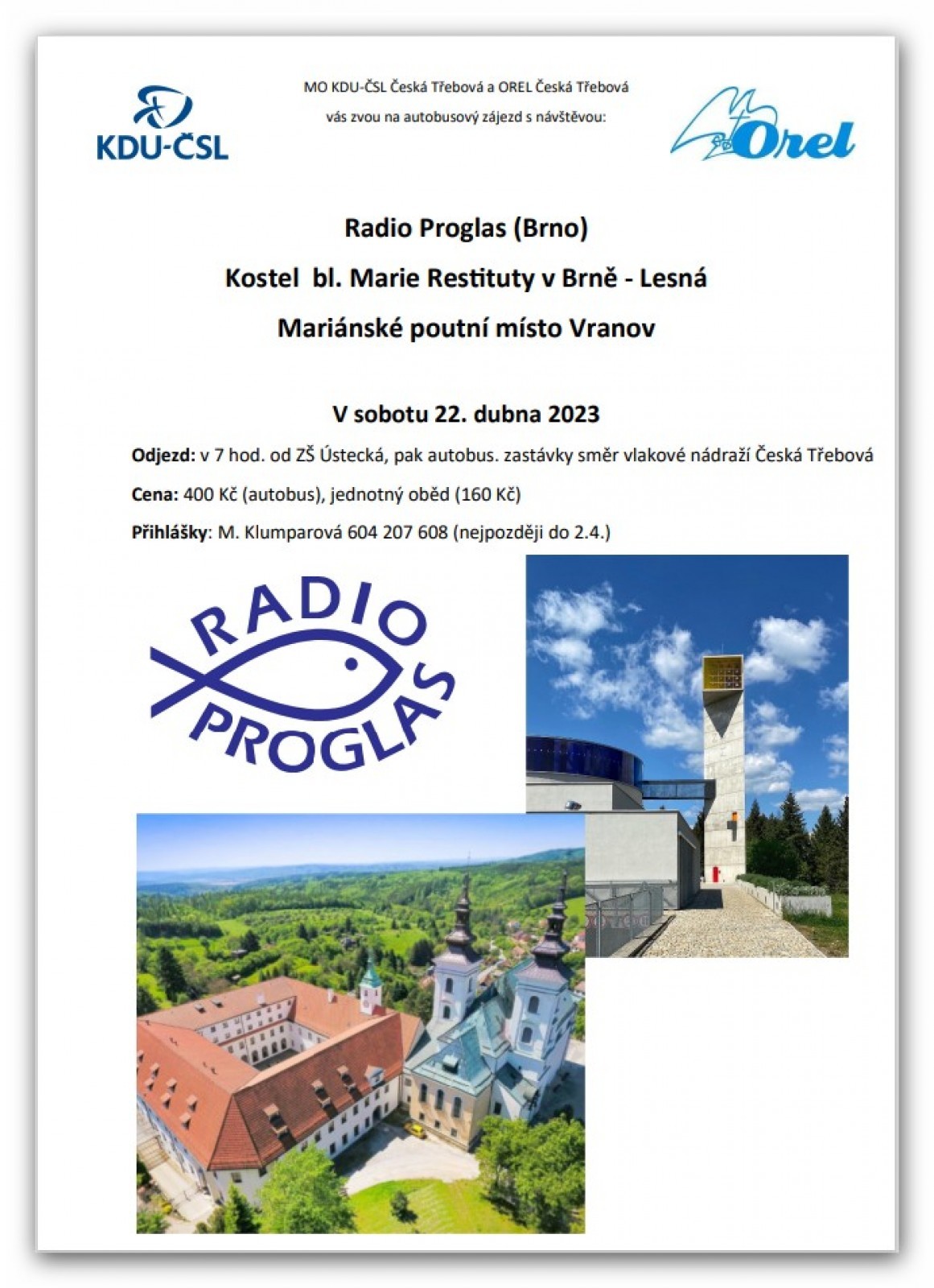 MO KDU-ČSL Česká Třebová a OREL Česká Třebová vás zvou na autobusový zájezd s návštěvou: