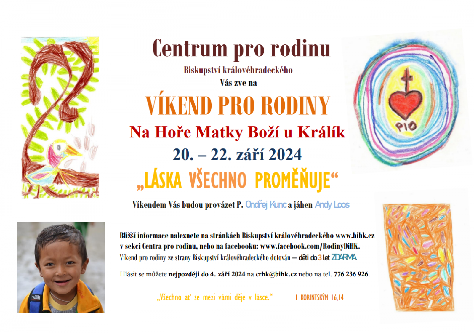 Víkend pro rodiny ze strany Biskupství královéhradeckého dotován – děti do 3 let ZDARMA.