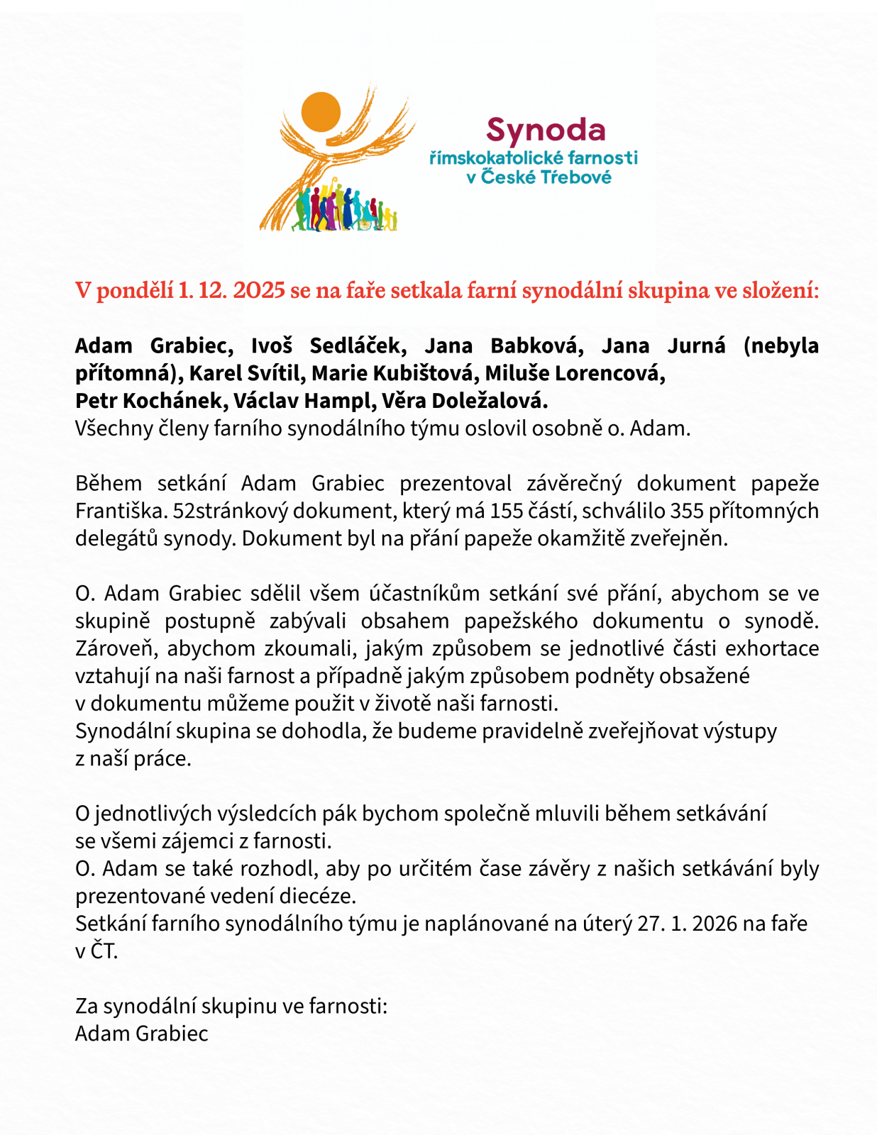 Zápis z 1. setkání farní synodální skupiny