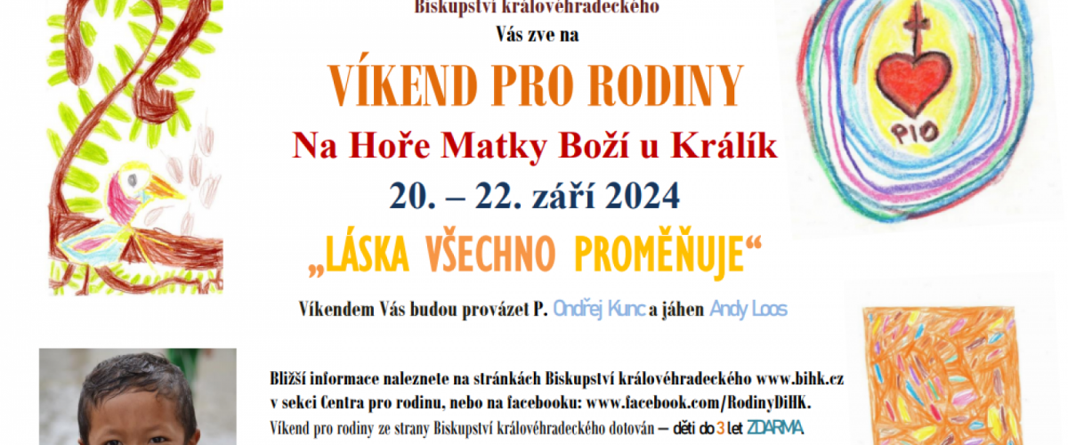 Víkend pro rodiny ze strany Biskupství královéhradeckého dotován – děti do 3 let ZDARMA.