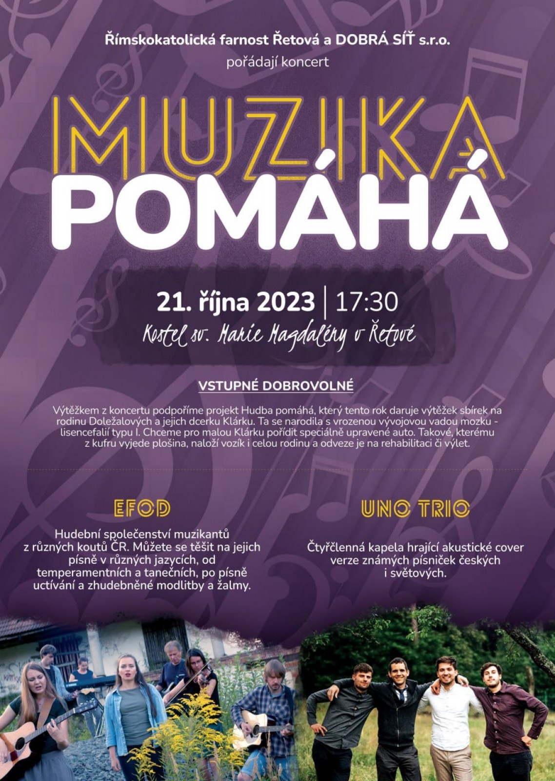 Pozvání na koncert do Řetové - podpořte projekt "Hudba pomáhá"
